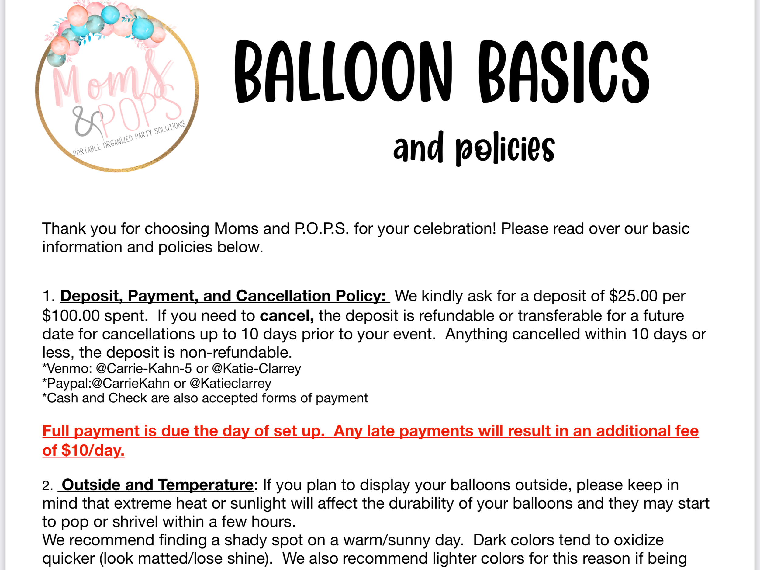 We always leave a few extra balloons with our orders. Factors such as extreme heat and sunlight will affect the durability of your balloons. Balloons can pop and shrink if installed in direct heat and sunlight within a few hours. If installed inside, your balloons can last weeks to months!